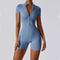 Move freely and look fierce with the Women's Summer Short Sleeve Yoga Jumpsuit, a sleek one-piece bodysuit designed for yoga, gym sessions, running, dance, and more. Made with stretchy, breathable fabric and a stylish front zipper, this form-fitting suit offers both support and flexibility. The short sleeve design keeps you cool during intense workouts, while the all-in-one silhouette creates a flattering, sculpted look perfect for activewear or athleisure style.